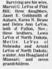 | Far | Lars Andreas "Andrew*" Larsen Levos*, f. 14 Jan 1874, Sveio, Lauvås, Hordaland d. 1 Feb 1951, Casselton, Cass County, North Dakota, USA (Ålder 77 år) | |